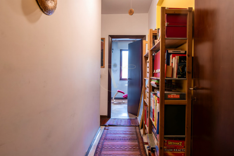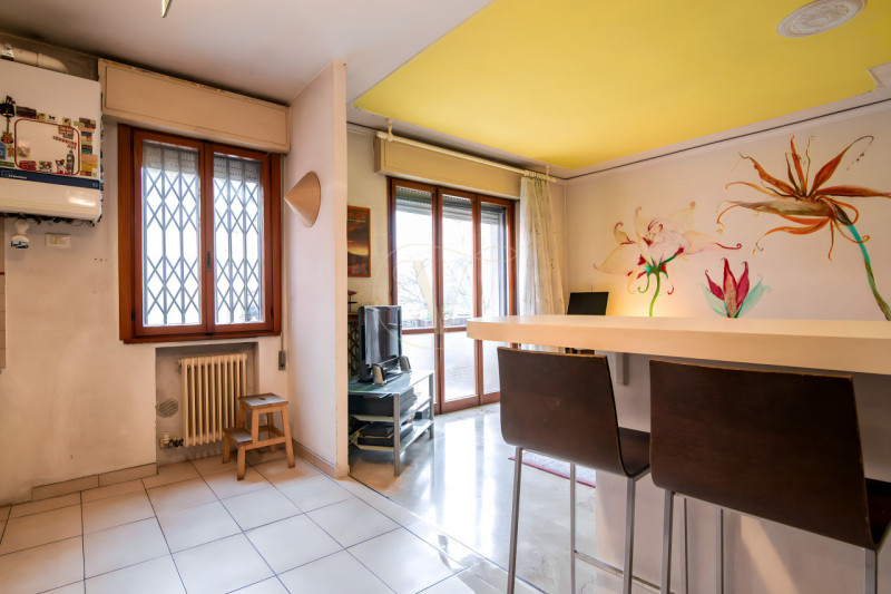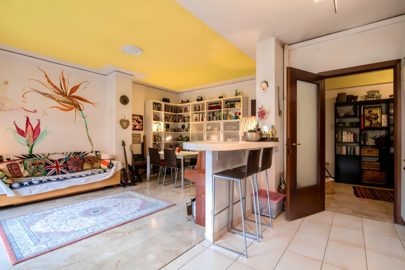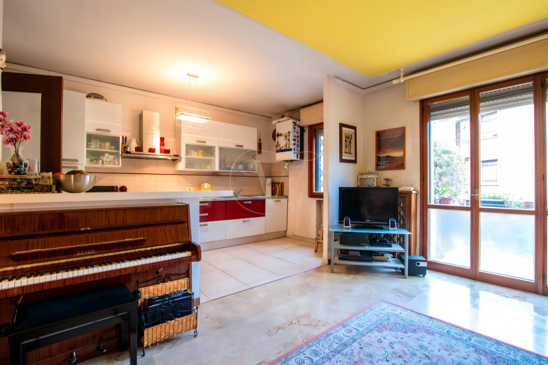 Il soggiorno è caratterizzato da un’ottima luminosità naturale e gode di un gradevole affaccio sul verde del parco adiacente, ideale per momenti di relax.Un corridoio centrale collega in modo ordinato la zona giorno alla zona notte, composta da due camere da letto: una matrimoniale e una seconda camera ben dimensionata, adatta anche a uso studio.