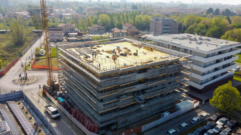 Proponiamo in vendita 4 appartamenti di circa 120 mq ciascuno, situati al primo piano di una palazzina di nuova costruzione dotata di ascensore, nel tranquillo e ben servito quartiere Cipressina a Mestre. Ogni appartamento è composto da un ingresso, 1 luminosa zona living con cucina open-space, 2 bagni moderni dotati di scalda salviette e sanitari in stile “filo muro”, 2 camere singole,1 camera matrimoniale,1 disimpegno notte e un pratico ripostiglio. Ogni unità abitativa dispone inoltre di una spaziosa terrazza di circa 45 mq, ideale per momenti di relax all’aperto, e di un garage al piano terra ad uso esclusivo. Le soluzioni sono dotate di impianti di ultima generazione, tra cui riscaldamento a pavimento alimentato da pompa di calore, impianto fotovoltaico da 2 kW e VMC canalizzato. Completano la dotazione infissi esterni in PVC, porte interne bianche, tapparelle coibentate e motorizzate. La classe energetica è A4, garanzia di efficienza e risparmio energetico. È possibile personalizzare le finiture interne scegliendole da capitolato. Per ricevere ulteriori informazioni o per fissare un appuntamento per una visita in cantiere, non esitate a contattarci!