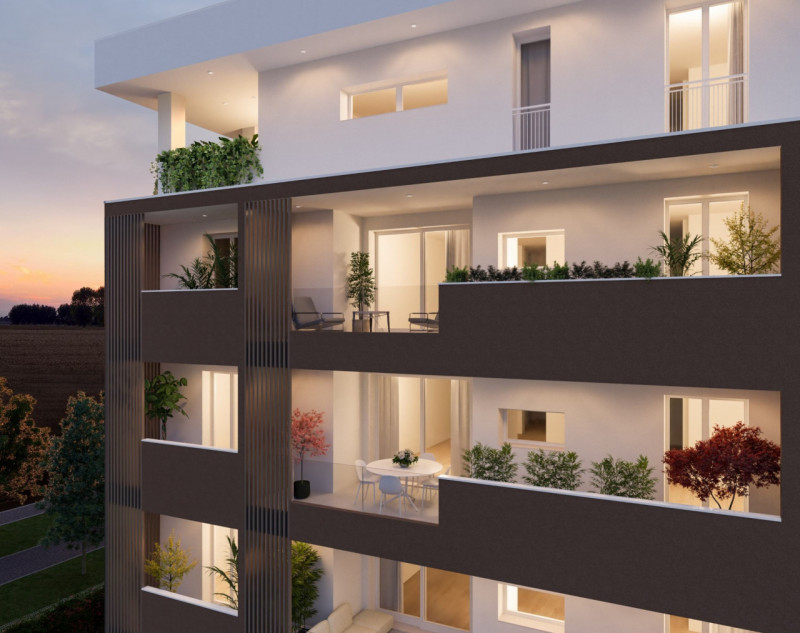 L’immobile è caratterizzato da ingresso su ampia e luminosa zona living/cottura di circa 28 mq. con accesso alla terrazza abitabile di circa 11 mq., disimpegno, ripostiglio, due camere (matrimoniale con poggiolo a livello) e doppi servizi.