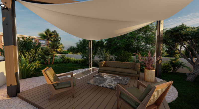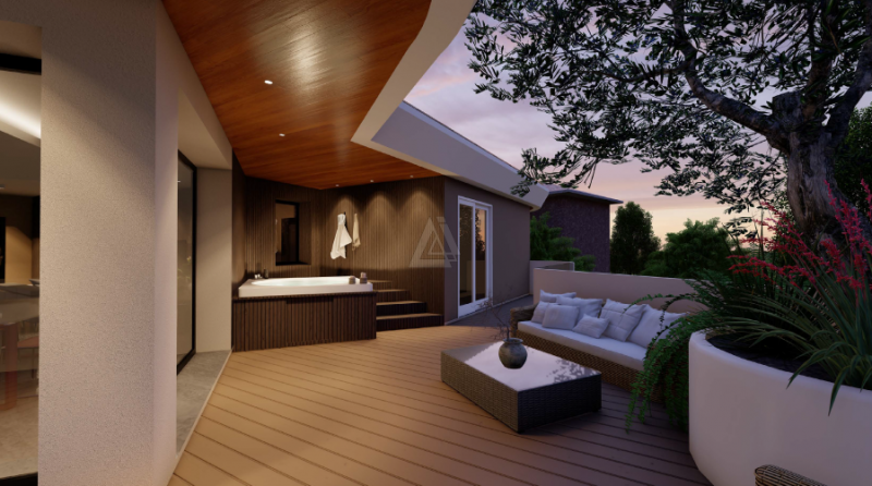 L’immobile presenta al piano sovrastante, unico nel suo genere, un terrazzo verde panoramico in parte piastrellato e in parte coperto da un tappeto verde, uno spazio riservato adatto a cene o pranzi all’aperto in totale riservatezza.