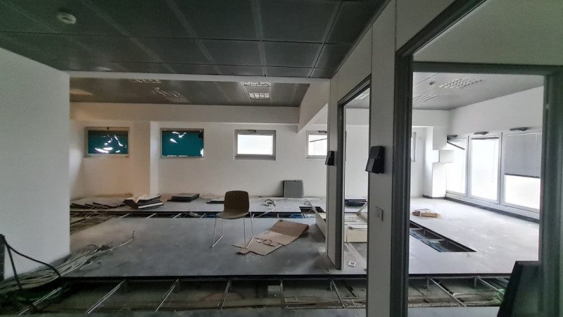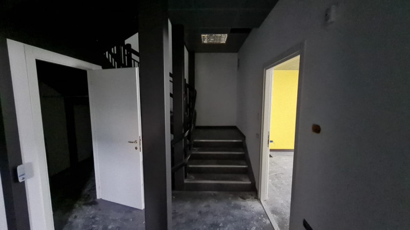 Al primo piano, collegato da una scala interna troviamo due ampi uffici per un totale di 100 mq c.ca.