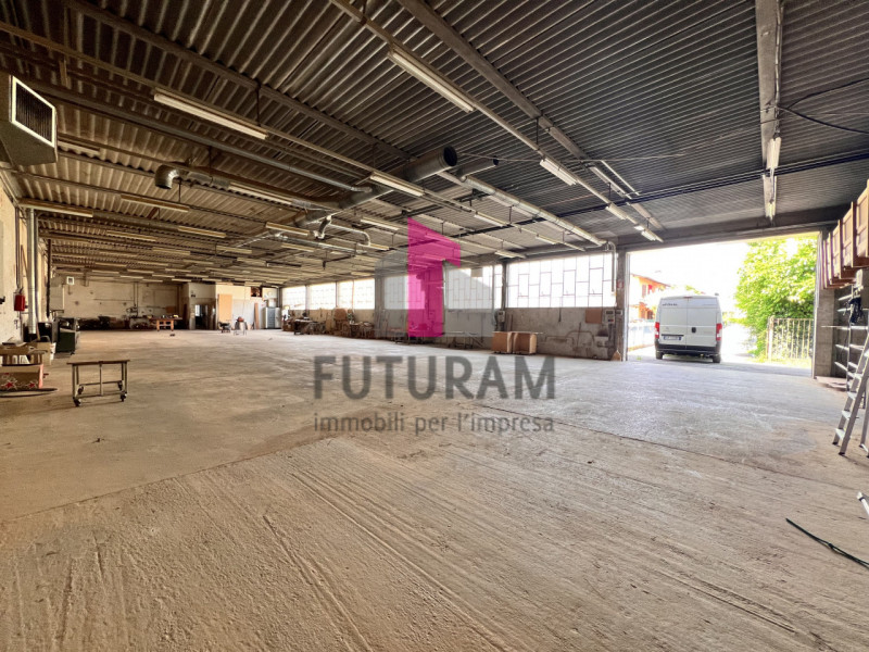 L’immobile si compone di spazio espositivo fronte strada con cinque ampie vetrine, tre blocchi ad uso produttivo/magazzino tra loro collegati, appartamento al piano primo completo di garage e cantina ed esterno privato sui tre lati del fabbricato.