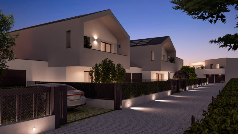 Ogni abitazione assicura privacy e sicurezza totali, massimo comfort, dove gli spazi interni ed esterni sono sempre luminosi, grazie anche alle ampie vetrate e al giardino di proprietà che avvolge ogni unità abitativa, donandole un tocco signorile.