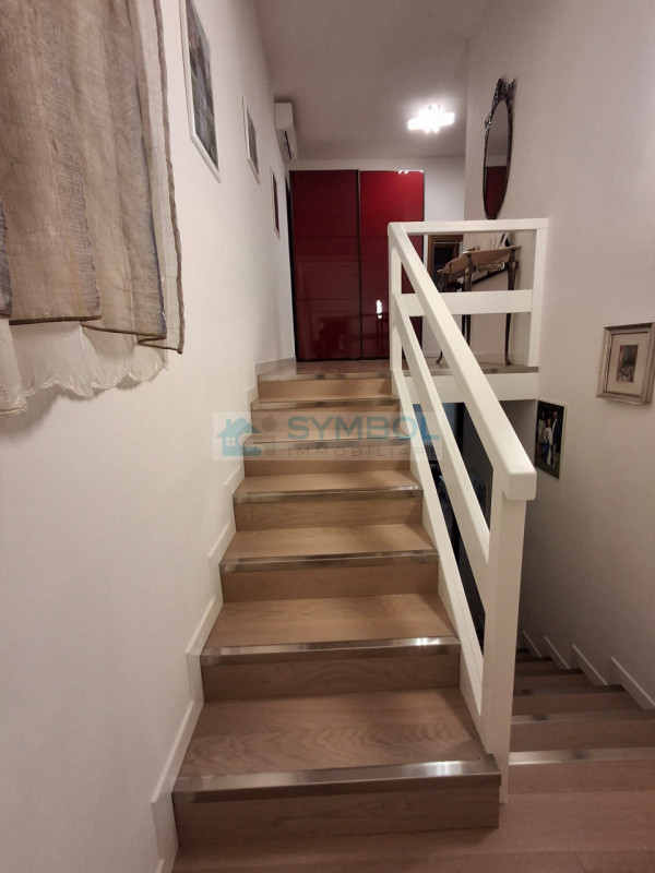 La scala interna porta alla zona notte composta da quattro camere matrimoniali dalle generose metrature, secondo bagno finestrato moderno e due terrazze panoramiche ideali per momenti di relax all’aria aperta. Il giardino privato di circa 200 mq offre privacy assoluta ed è arricchito da una pompeiana attrezzata perfetta per cene estive o area giochi bimbi.