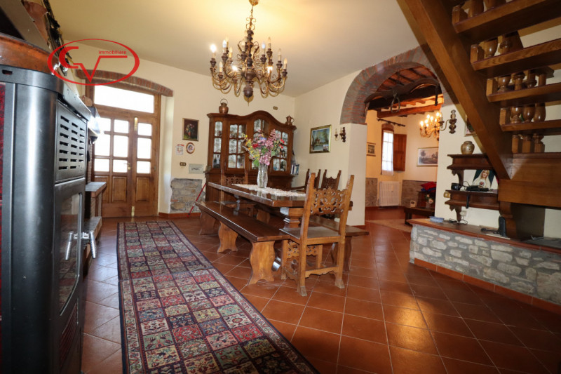 comune. La zona giorno comprende una cucina abitabile, un soggiorno con camino e caldaia a pellet che alimenta il riscaldamento in alternativa al GPL, un ulteriore salotto ed 1 bagno, dalla zona giorno tramite bella scala in legno si accedere al piano superiore attualmente zona notte.La zona notte è composta da 4 camere da letto matrimoniali , 1 bagno e un ampio salotto munito di camino da cui si accede all’ esterno mediante ingresso indipendente.L’abitazione è dotata di un efficiente impianto di riscaldamento a radiatori/pannelli radianti alimentato a pellet, che garantisce un comfort termico ottimale e un risparmio energetico significativo.