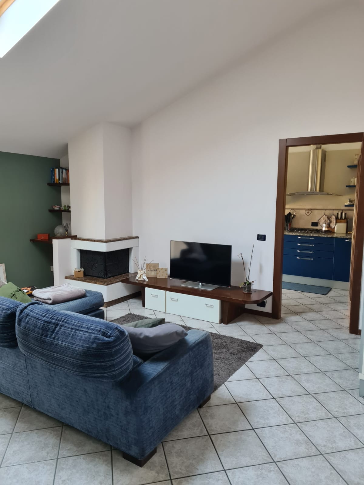 Posizione verde e tranquilla e nello stesso tempo comoda a tutti i servizi in palazzina di recente costruzione, luminoso appartamento posto all’ultimo piano composto da soggiorno con camino, cucina abitabile, due camere e servizio. Completamente arredato, climatizzato, riscaldamento autonomo. Completa la proprietà cantina ed autorimessa.